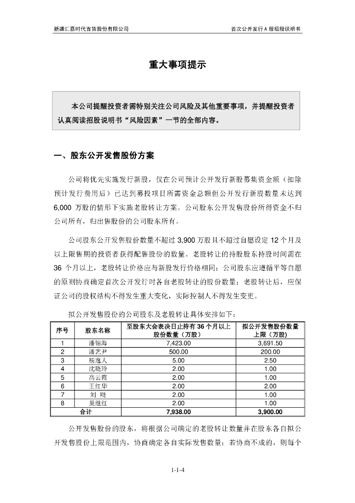 新疆汇嘉时代百货股份有限公司上交所主板IPO上市招股说明书.pdf