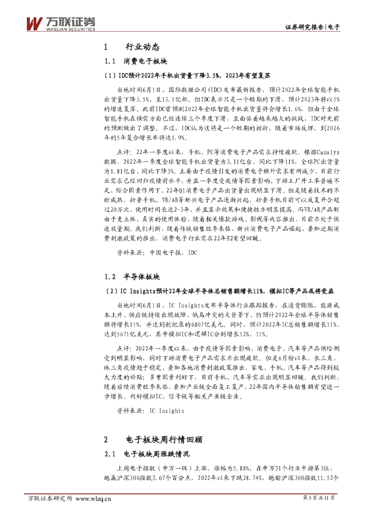 万联证券:电子行业周观点:消费电子需求有望回暖,全球半导体销售额预期增长.pdf