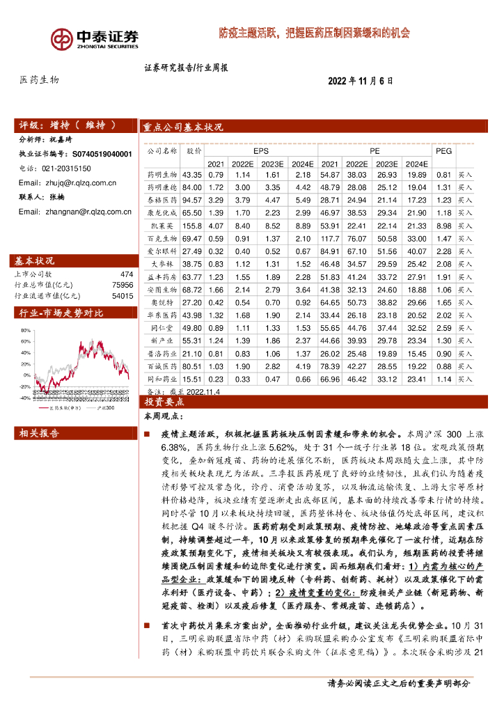 中泰证券:医药生物行业周报:防疫主题活跃,把握医药压制因素缓和的机会.pdf