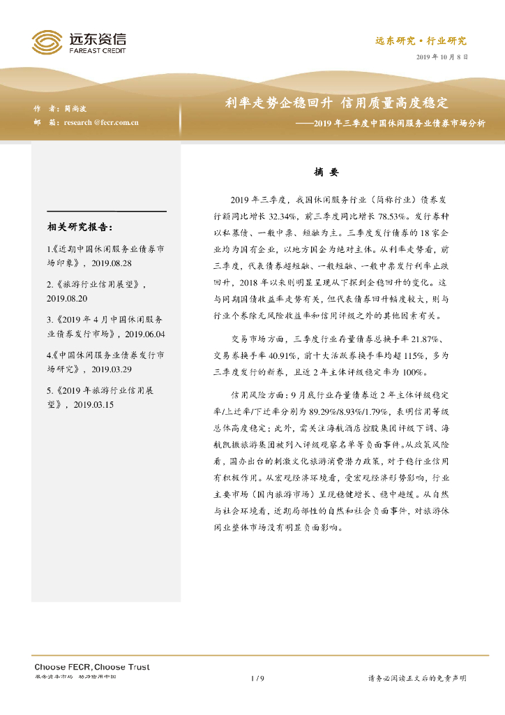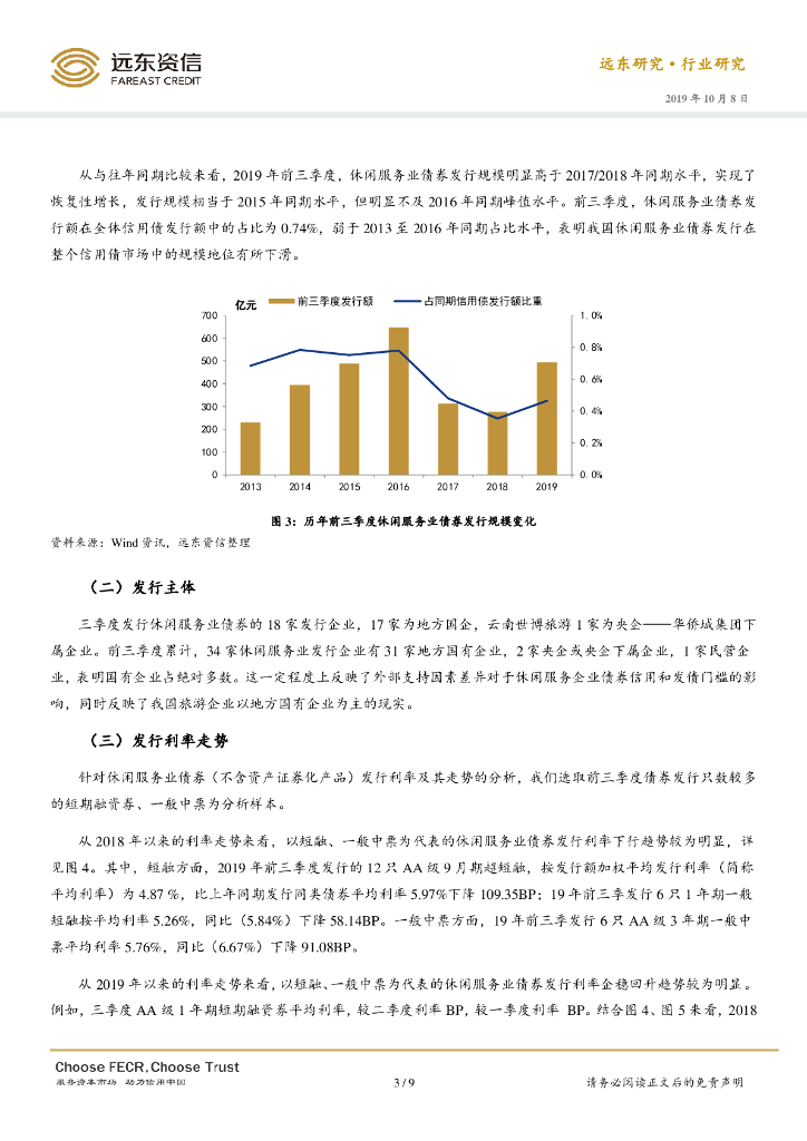 远东资信:利率走势企稳回升,信用质量高度稳定——2019年三季度中国休闲服务业债券市场分析报告.pdf