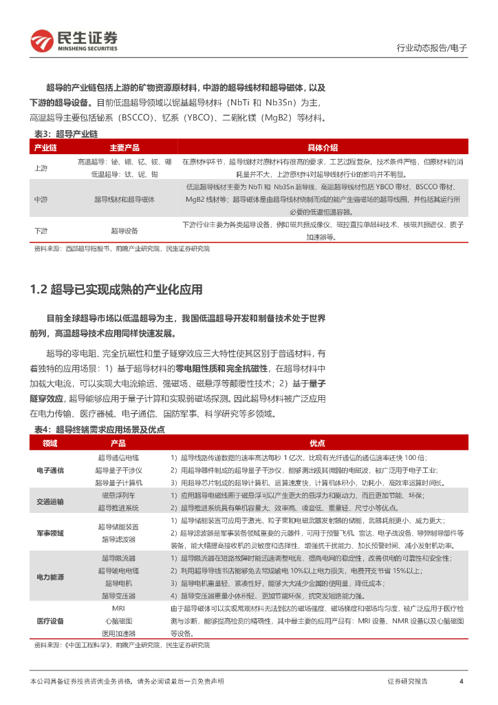 民生证券:电子行业跟踪:高温超导特性优异,行业应用前景广阔.pdf