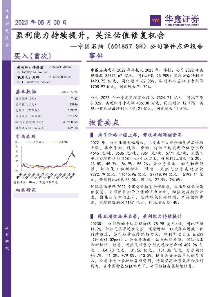 华鑫证券:中国石油(601857)-公司事件点评报告:盈利能力持续提升,关注估值修复机会.pdf