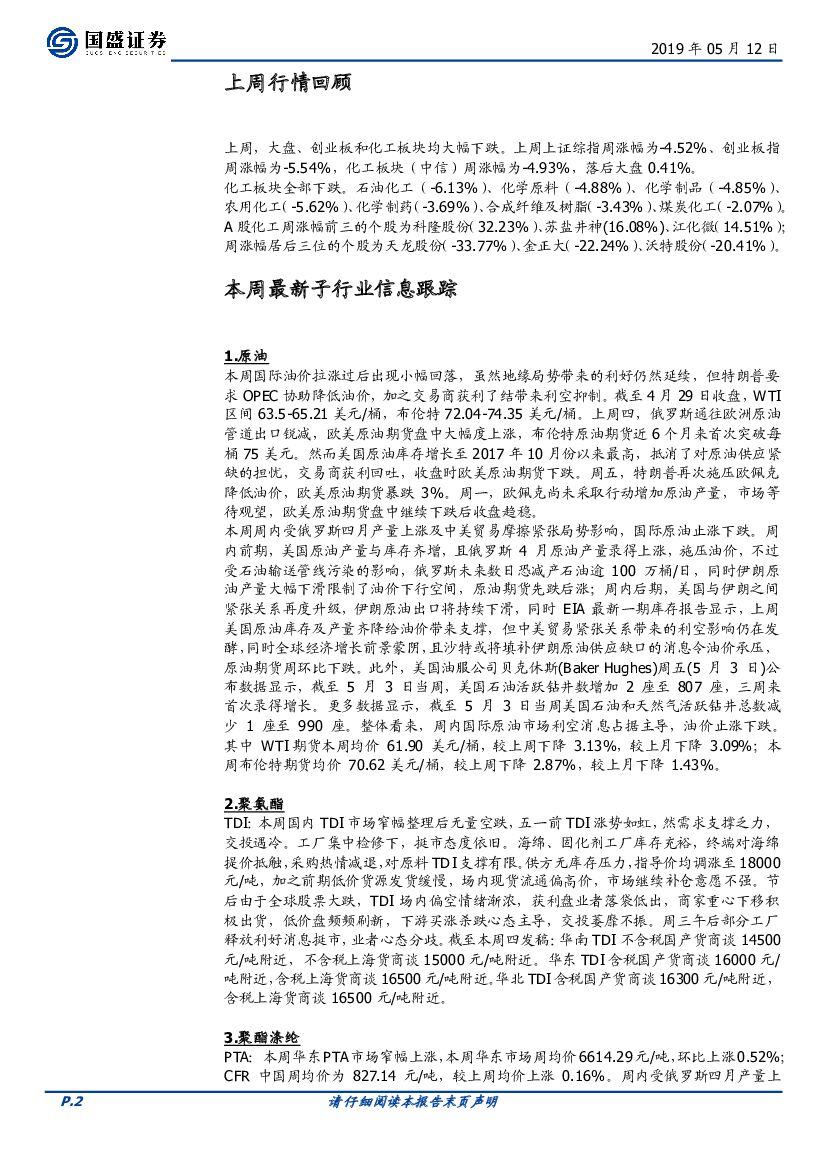 国盛证券:化工行业周报:继续推荐精细化工龙头及新材料成长标的.pdf