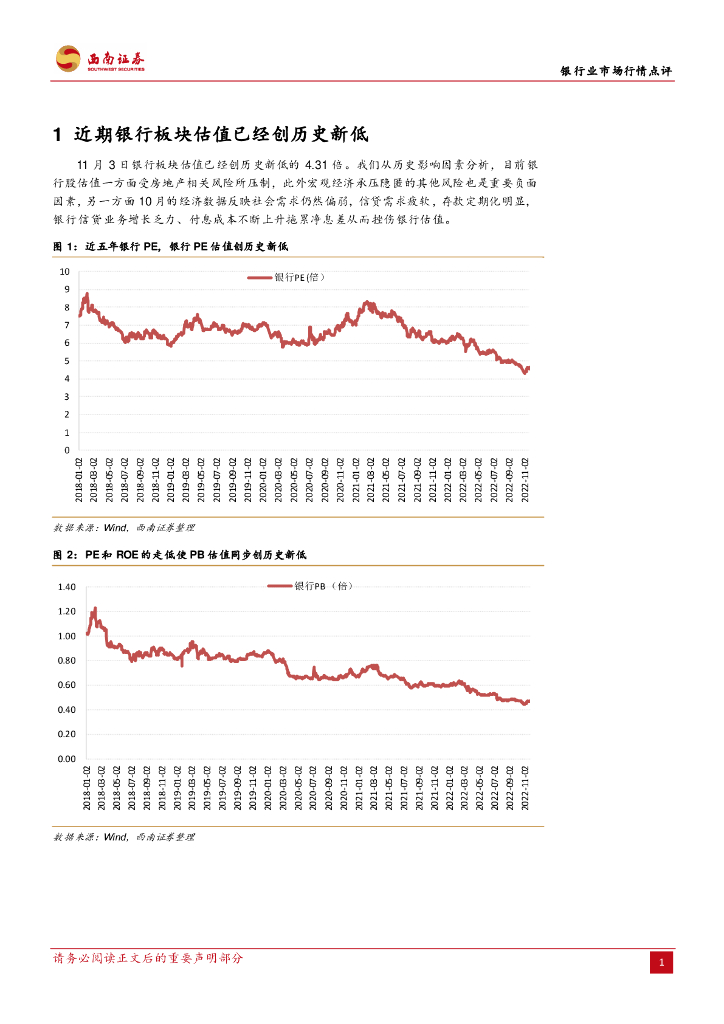 西南证券:银行业市场行情点评:银行板块估值创历史新低,多指标预示估值反弹,建议积极布局.pdf