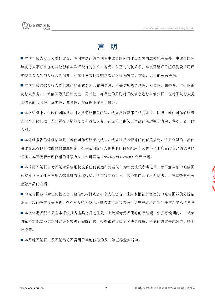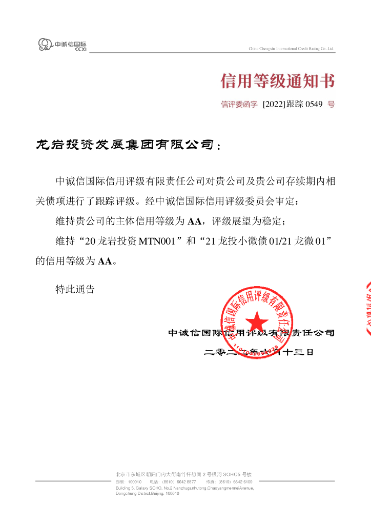 中诚信:龙岩投资发展集团有限公司2022年度跟踪评级报告.pdf