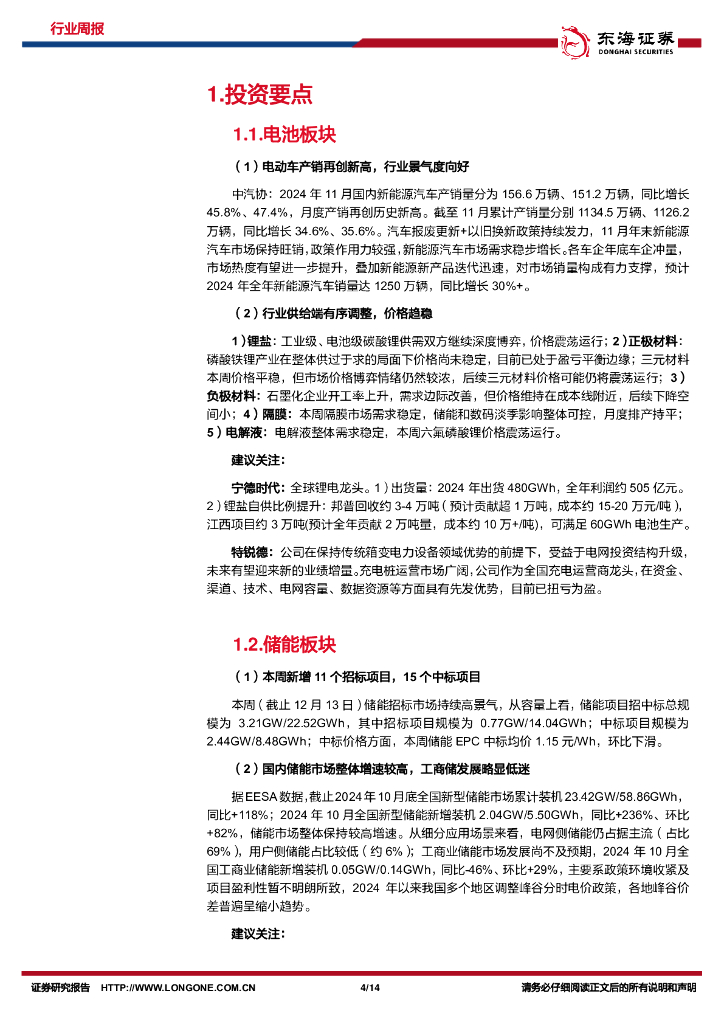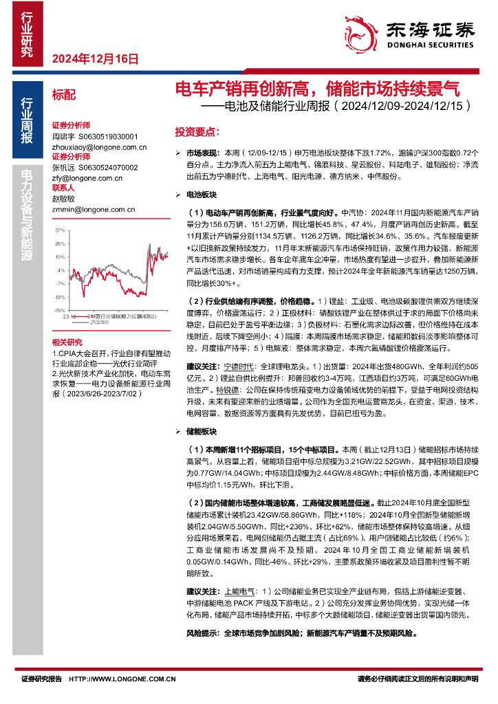 东海证券:电池及储能行业周报:电车产销再创新高,储能市场持续景气.pdf