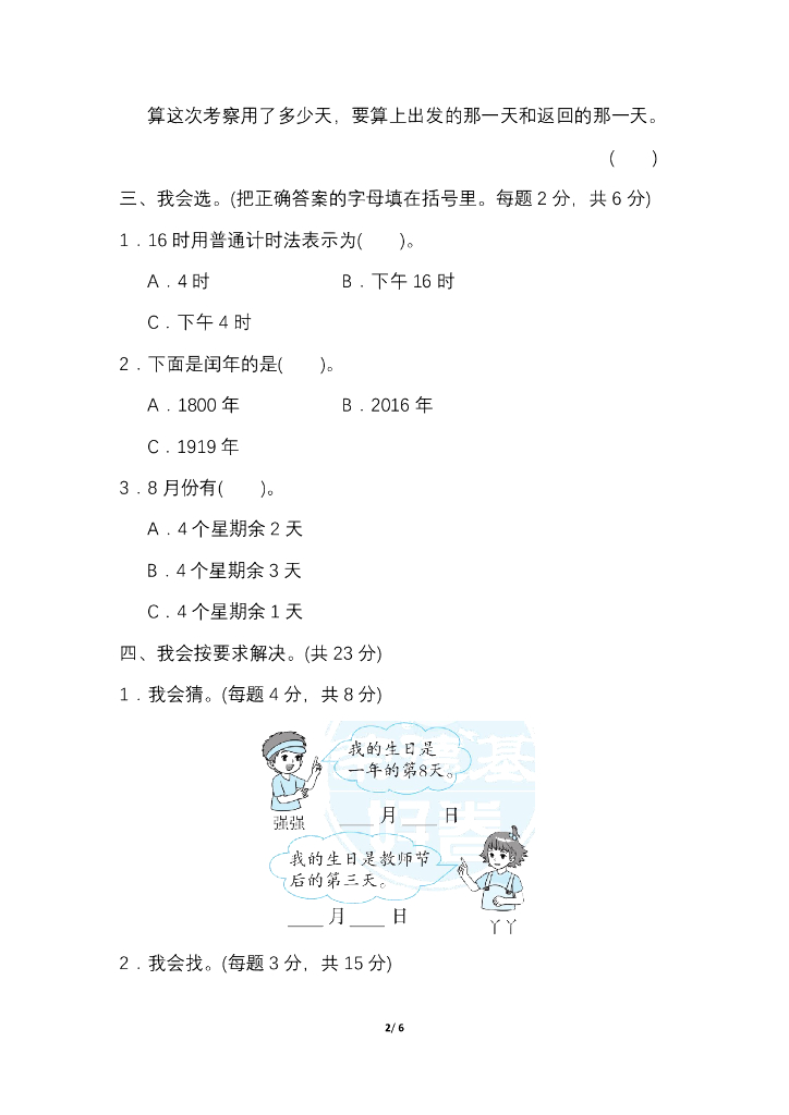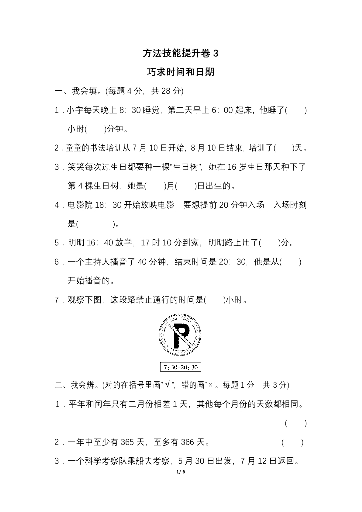 人教三(下)期末冲刺卷3 巧求时间和日期.pdf