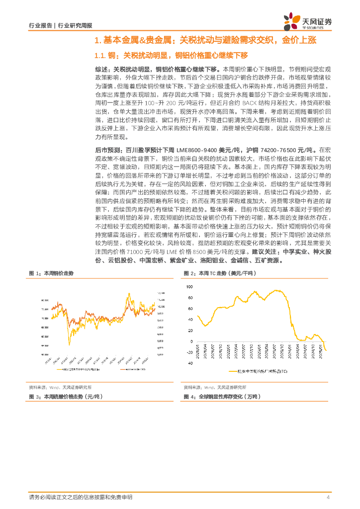 天风证券:金属与材料行业研究周报:关税风云反复,重视金价上行趋势下黄金板块投资机会.pdf