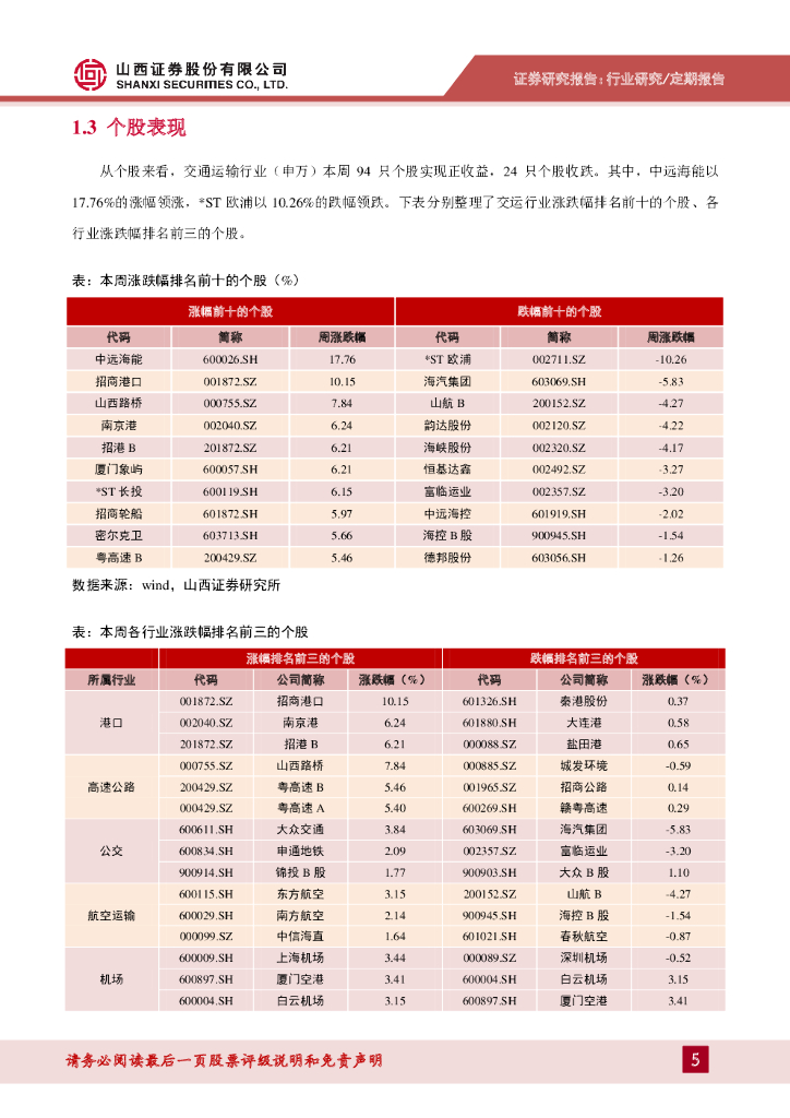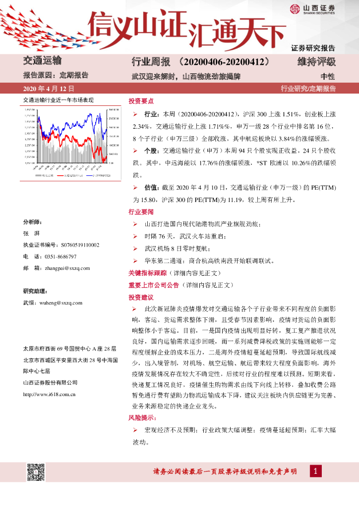 山西证券:交通运输行业周报:武汉迎来解封,山西物流劲旅揭牌.pdf