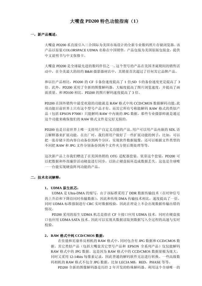 大嘴盘 PD200 业数码照片存储浏览器 特色功能指南.pdf