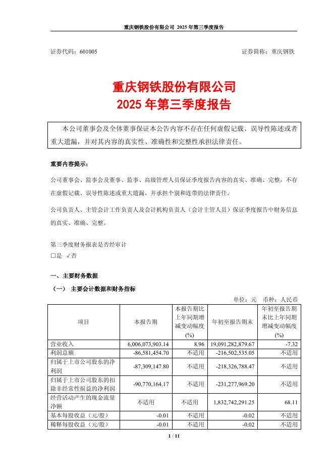 601005-重庆钢铁:2025年第三季度报告.pdf