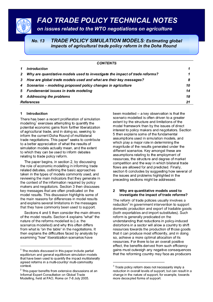 FAO联合国粮农组织:2005贸易政策模拟模型:评估多哈回合农业贸易政策改革的全球影响报告(英文版).pdf