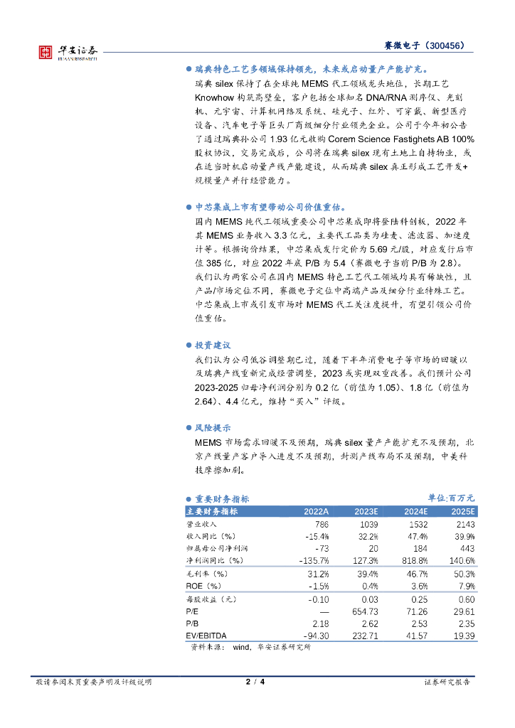 华安证券:赛微电子(300456)-低谷调整期已过,2023瑞典北京有望双重改善.pdf