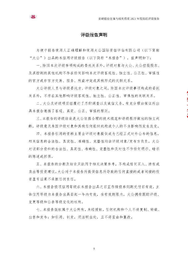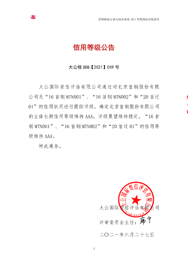 大公:北京首钢股份有限公司主体与相关债项2021年度跟踪评级报告.pdf