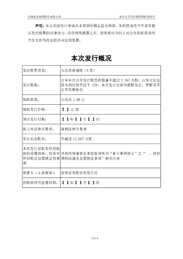东瑞食品集团股份有限公司深交所主板IPO上市招股说明书.pdf