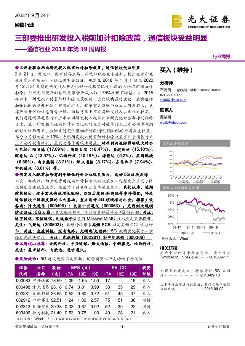 光大证券:通信行业2018年第39周周报:三部委推出研发投入税前加计扣除政策,通信板块受益明显.pdf