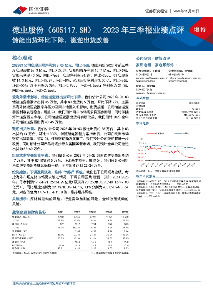 国信证券:德业股份(605117)-2023年三季报业绩点评:储能出货环比下降,微逆出货改善.pdf