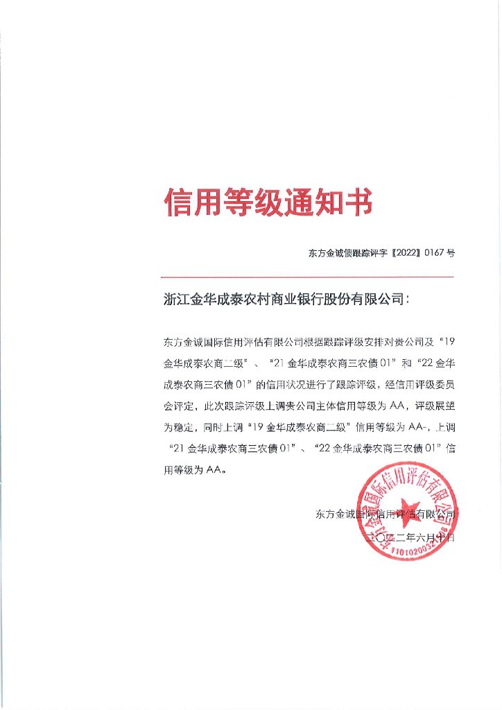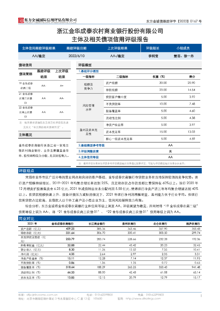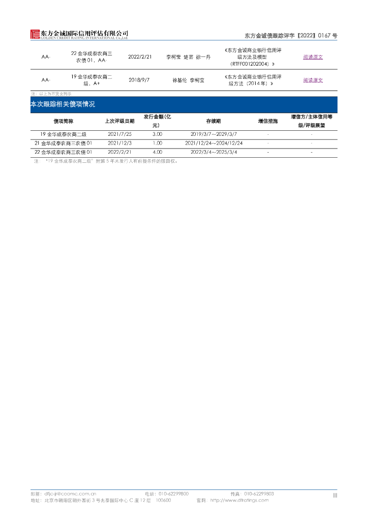 东方金诚:浙江金华成泰农村商业银行股份有限公司主体及相关债项信用评级报告.pdf