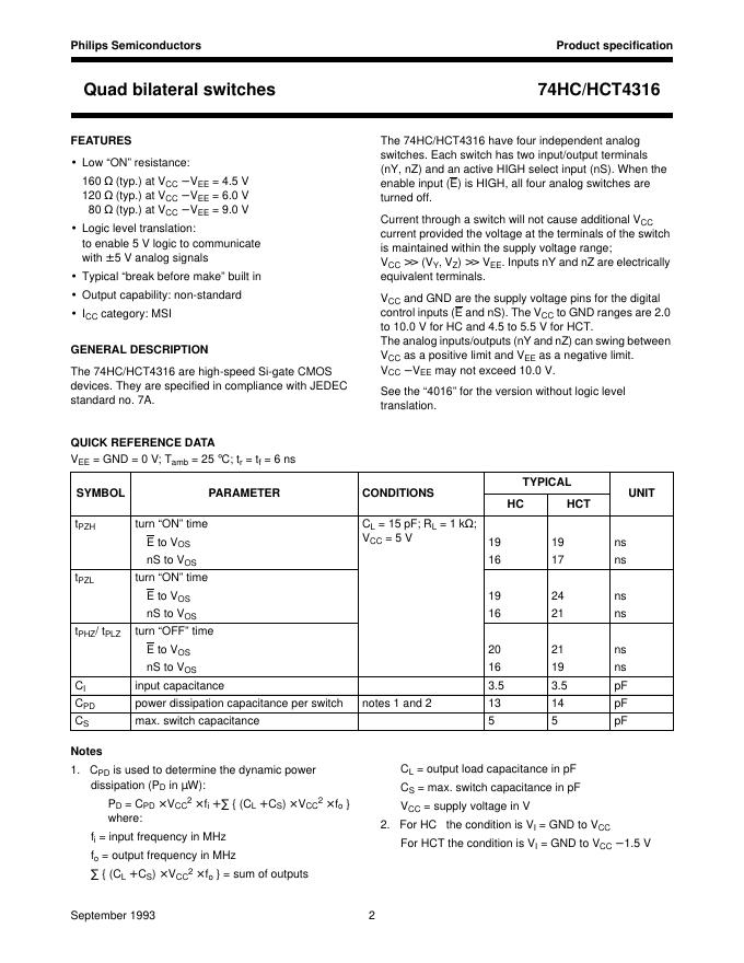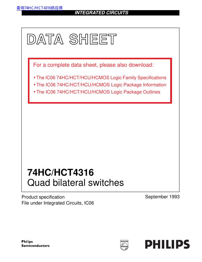 PHILIPS 74HC/HCT4316 Quad bilateral switches 数据手册.pdf
