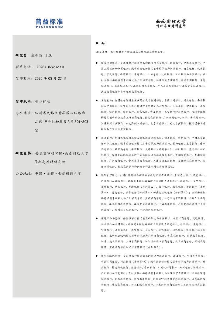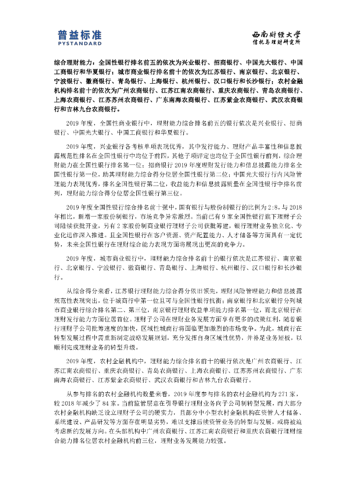 西南财经大学普益标准PYSTANDARD:2019年银行理财能力排名报告.pdf