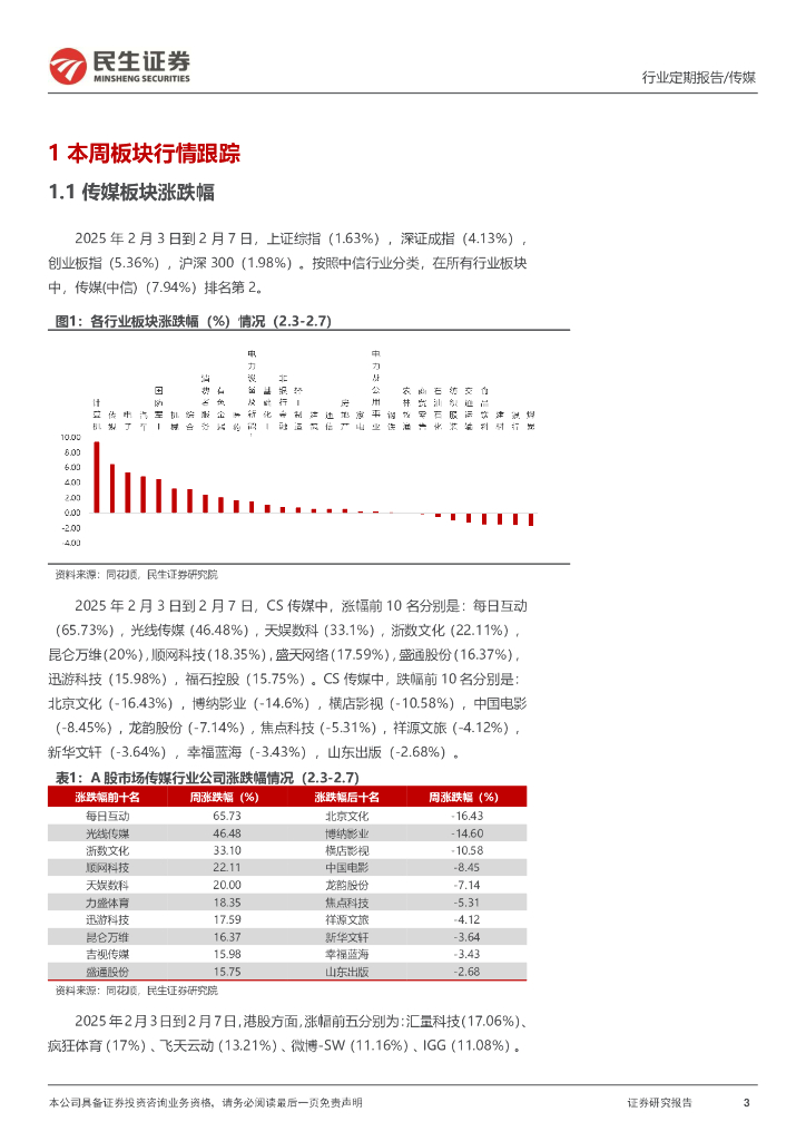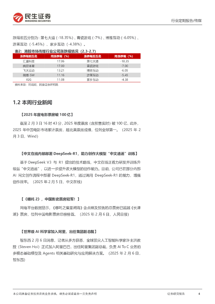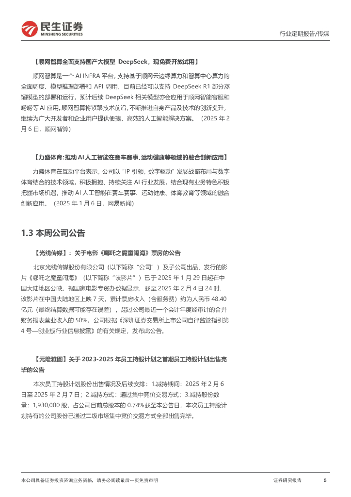 民生证券:传媒互联网行业周报:DeepSeek日活快速增长,春节档票房再创新高.pdf