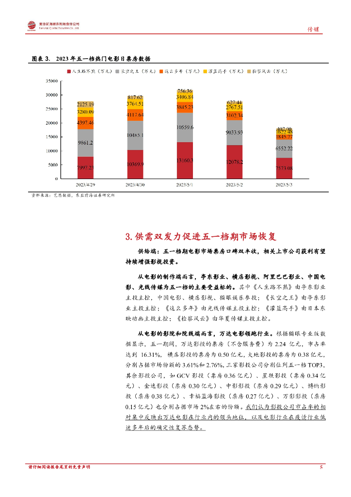东亚前海证券:2023年五一档传媒行业点评:五一档同期票房影史第三,电影市场温和回暖.pdf