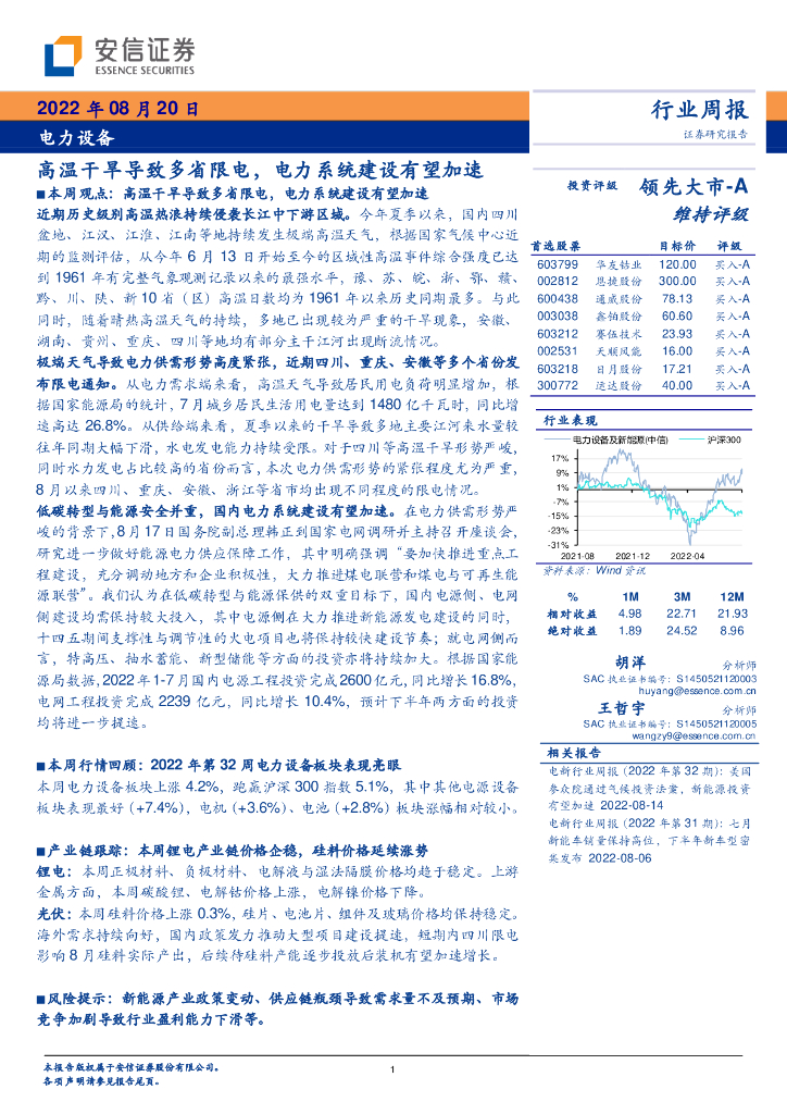 安信证券:电力设备行业周报:高温干旱导致多省限电,电力系统建设有望加速.pdf