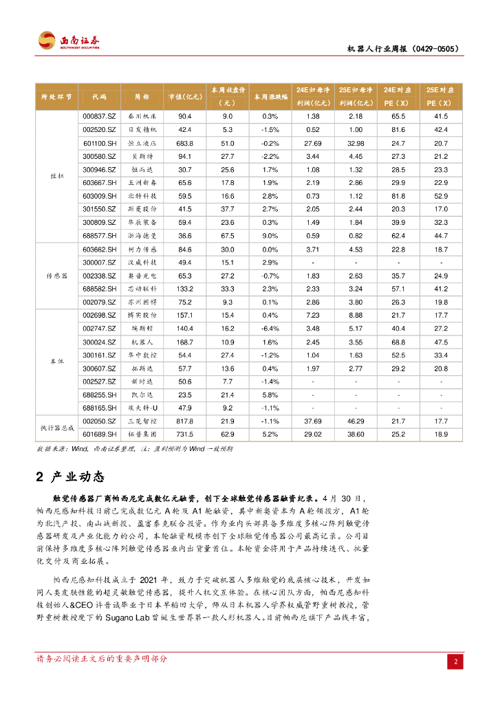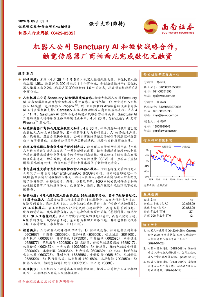 西南证券:机器人行业周报:机器人公司SanctuaryAI和微软战略合作,触觉传感器厂商帕西尼完成数亿元融资.pdf