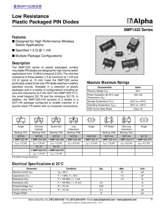Alpha SMP1322 Series 数据手册.pdf