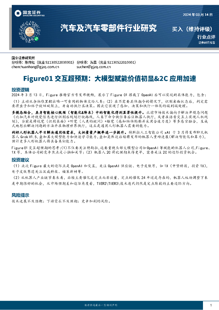 国金证券:汽车及汽车零部件行业研究:Figure01交互超预期:大模型赋能价值初显&2C应用加速.pdf