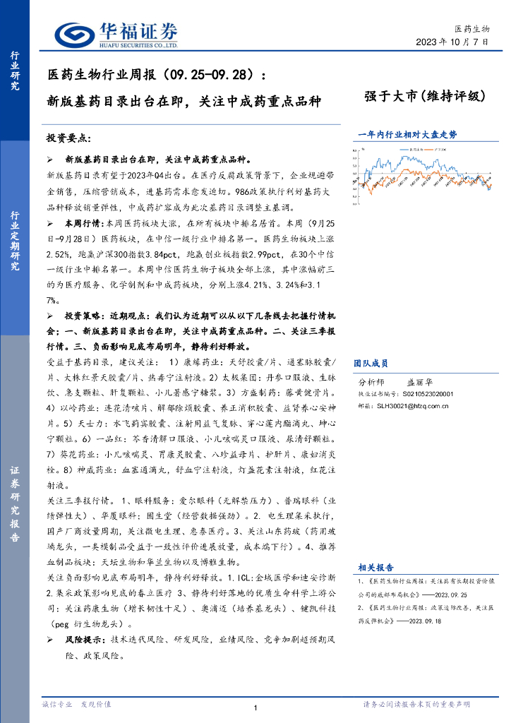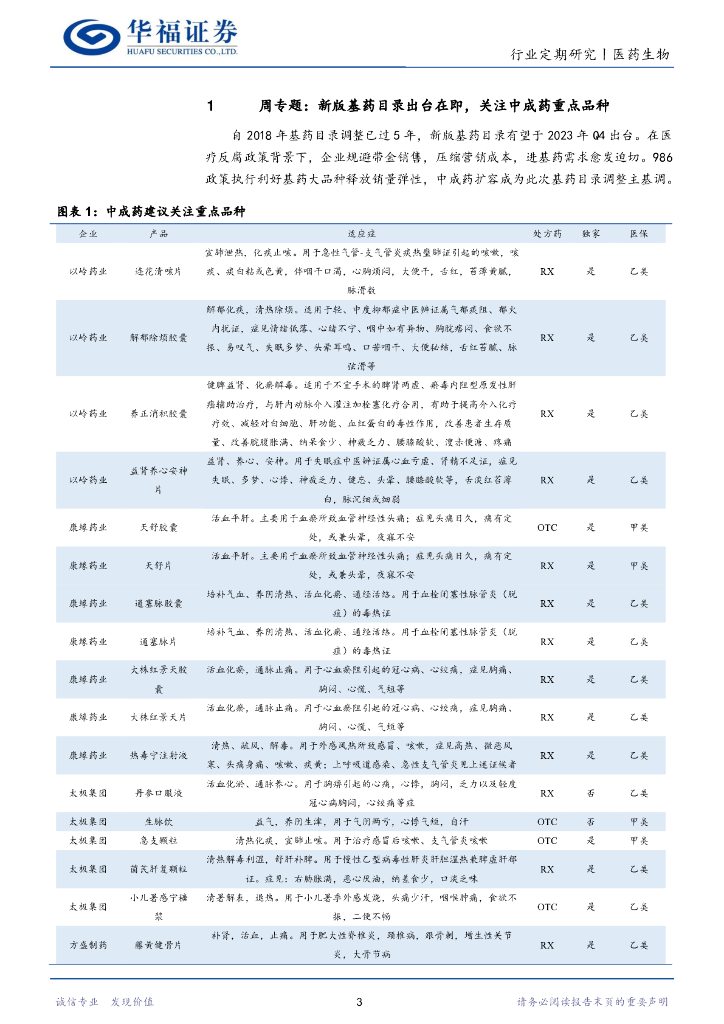 华福证券:医药生物行业周报:新版基药目录出台在即,关注中成药重点品种.pdf