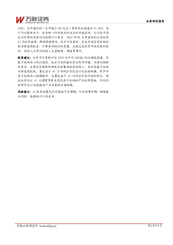 万联证券:计算机行业跟踪报告:行业整体营收回暖、利润承压,安防设备及大市值标的业绩表现较优.pdf
