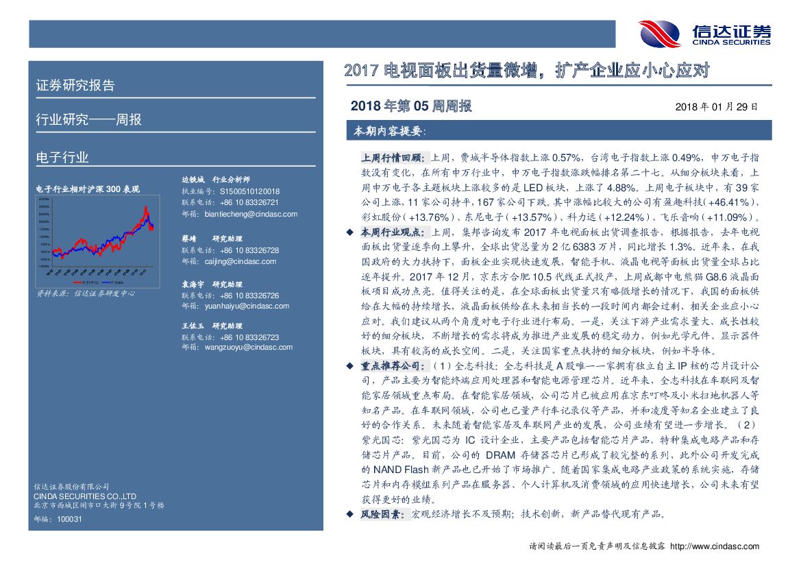 信达证券:2017电视面板出货量微增,扩产企业应小心应对.pdf