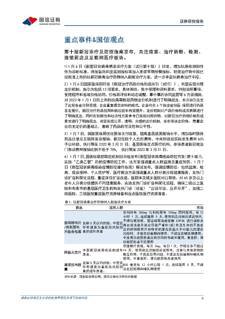 国信证券:医药行业周报(23年第2周):第十版新冠诊疗及防控指南发布,关注创新药械配置.pdf