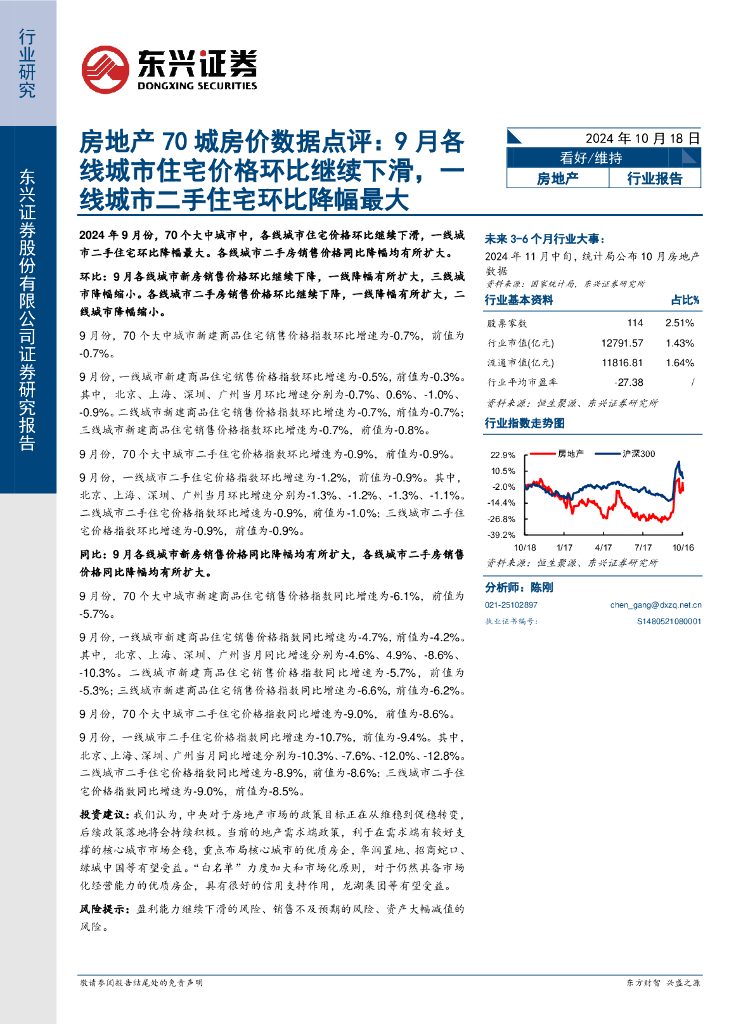 东兴证券:房地产70城房价数据点评:9月各线城市住宅价格环比继续下滑,一线城市二手住宅环比降幅最大.pdf