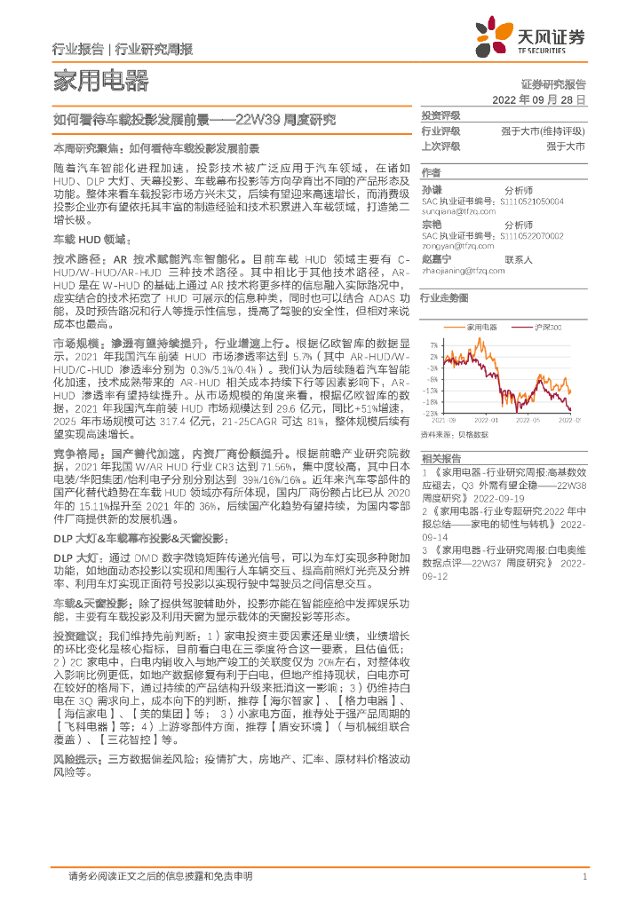 天风证券:家用电器22W39周度研究:如何看待车载投影发展前景.pdf