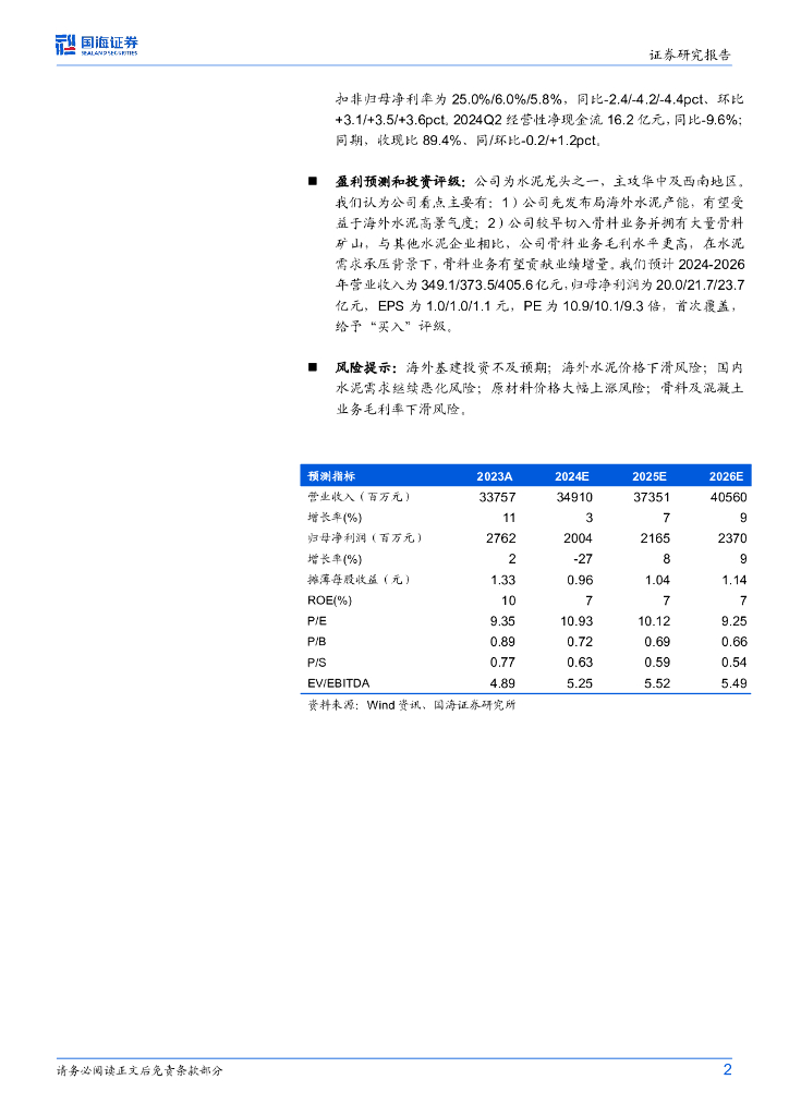 国海证券:华新水泥(600801)-2024中报点评:海外水泥、骨料业务表现亮眼,国内水泥承压.pdf