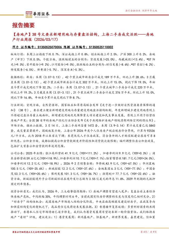中银证券:房地产行业周报:房地产行业第7周周报(2026年2月7日-2026年2月13日)新房、二手房成交环比降幅扩大、同比由正转负;重庆推出地产新政稳定房地产市场新房成交面积环比降幅扩大、同比由正转负;二手房成交面积环比降幅扩大,同比由