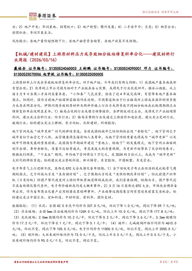 华源证券:建筑材料行业周报:继续重视电子布、地产链、地下管网
