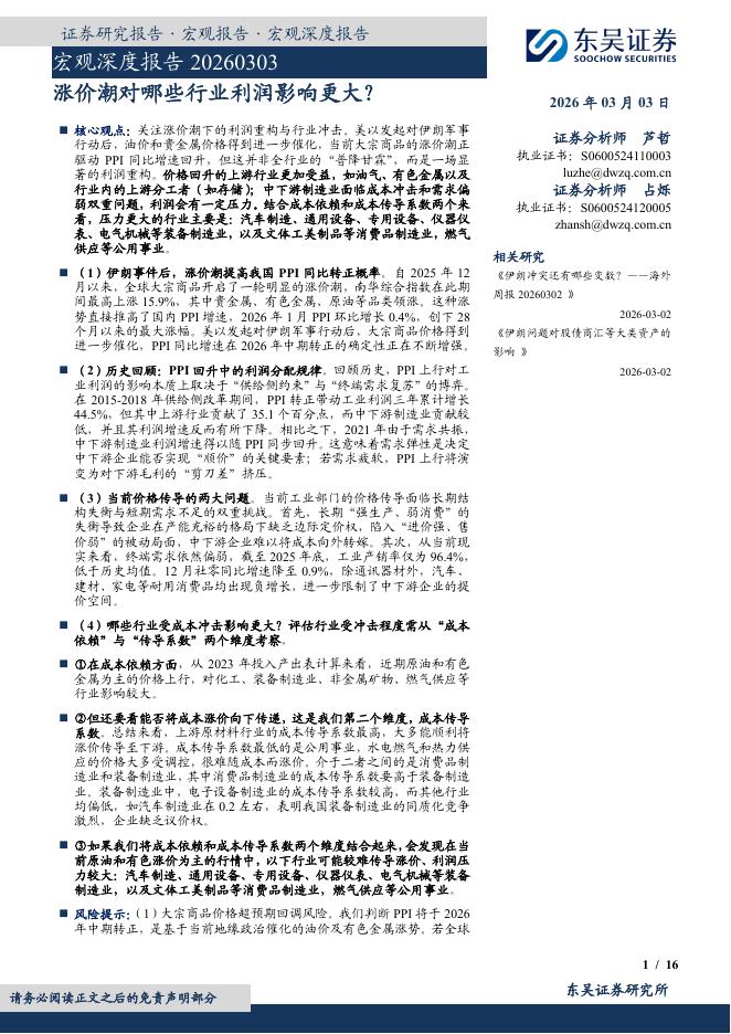 东吴证券:宏观深度报告:涨价潮对哪些行业利润影响更大?-260303.pdf