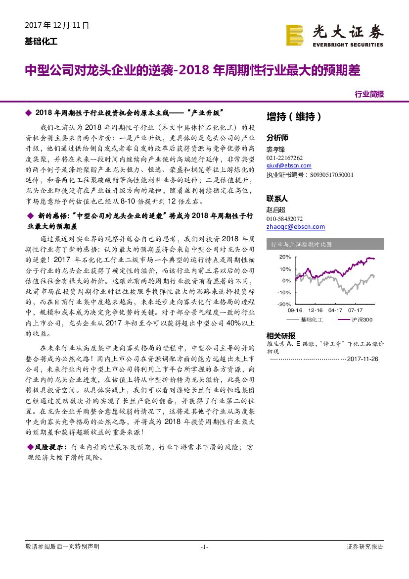光大证券:基础化工行业简报:2018年周期性行业最大的预期差-中型公司对龙头企业的逆袭.pdf