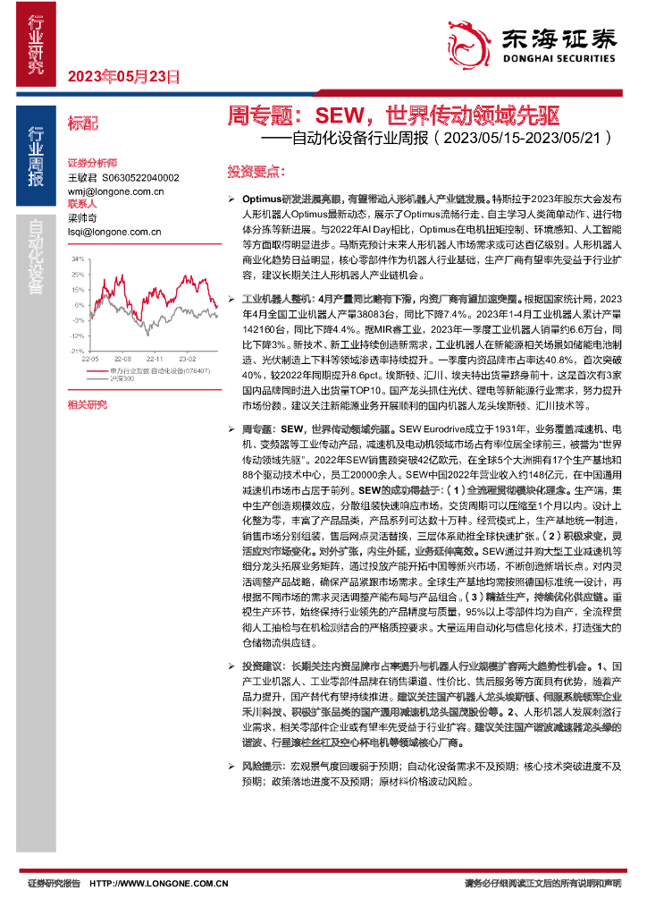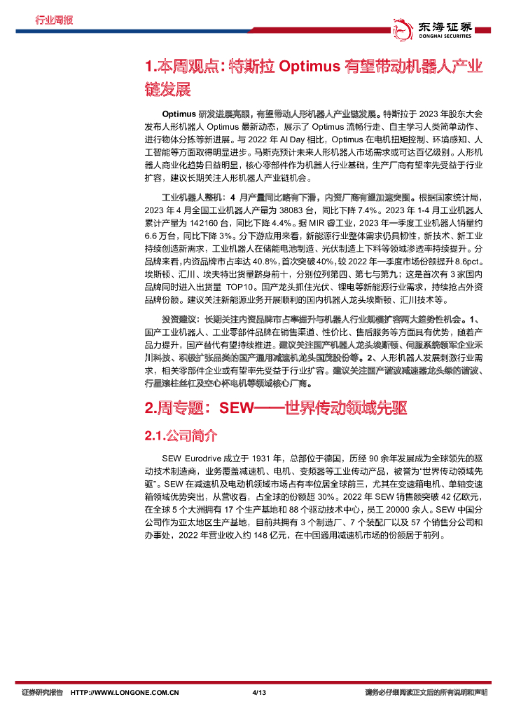 东海证券:自动化设备行业周报:周专题:SEW,世界传动领域先驱.pdf