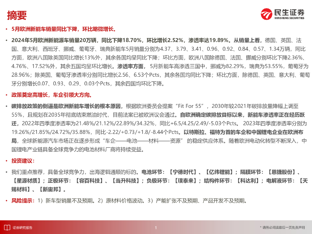 民生证券:EV观察系列165:5月欧洲新能车市场同比下降,单月渗透率环比略微提升.pdf