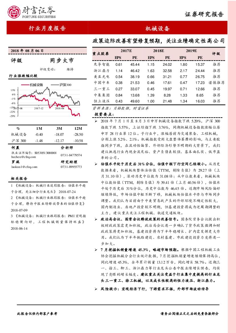 财富证券:机械设备行业月度报告:政策边际改善有望修复预期,关注业绩确定性高公司.pdf