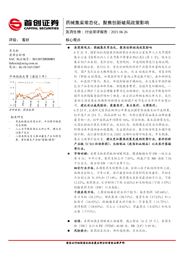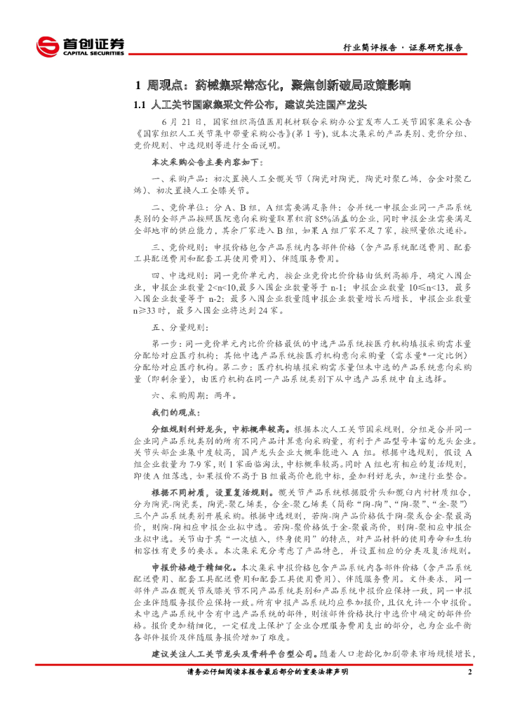 首创证券:医药生物行业简评报告——药械集采常态化,聚焦创新破局政策影响.pdf