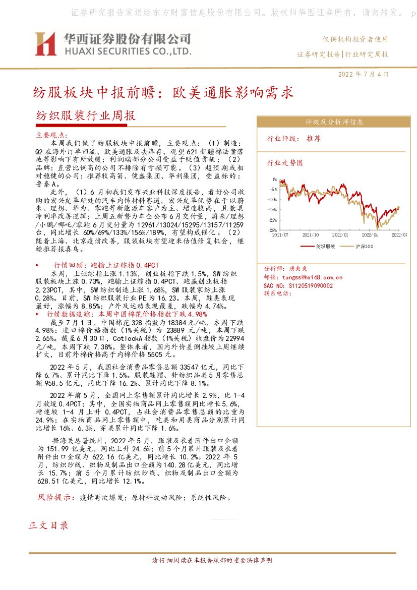 华西证券:纺织服装行业周报:纺服板块中报前瞻:欧美通胀影响需求.pdf