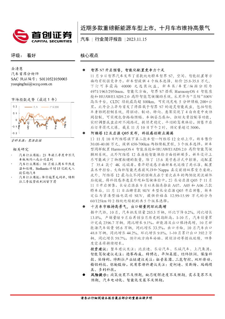 首创证券:汽车:近期多款重磅新能源车型上市,十月车市维持高景气.pdf