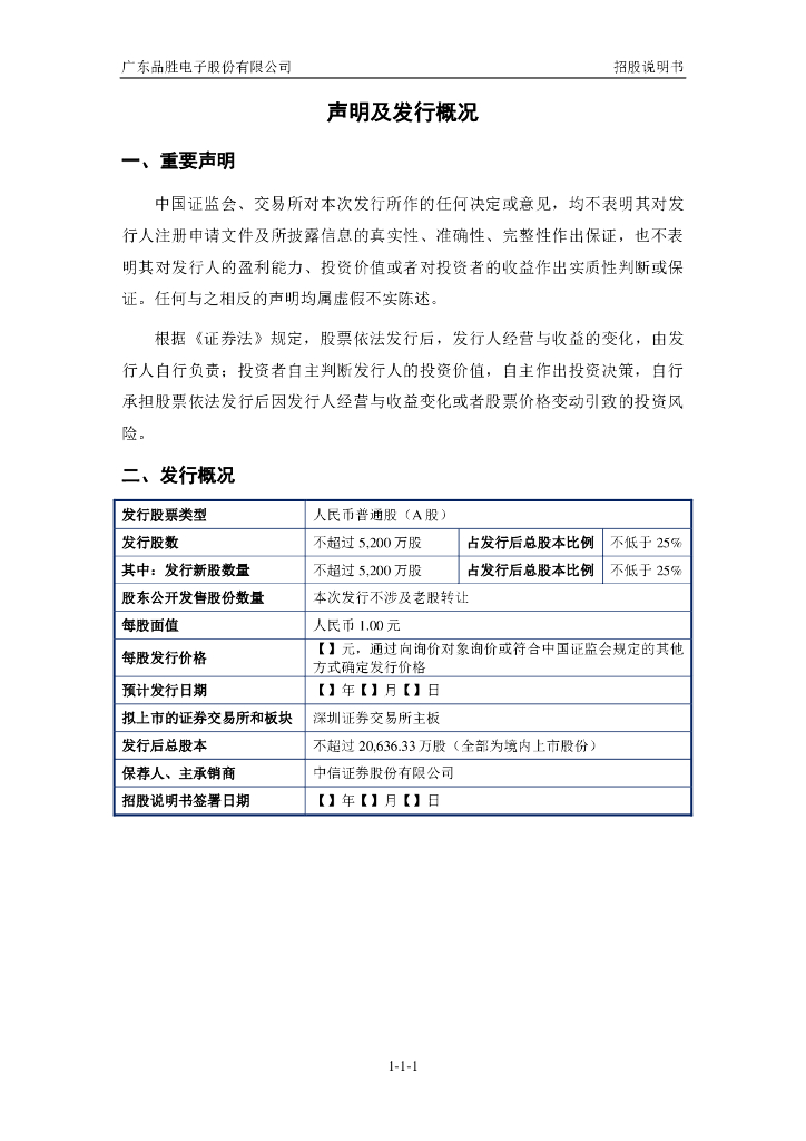 广东品胜电子股份有限公司深交所主板IPO上市招股说明书.pdf