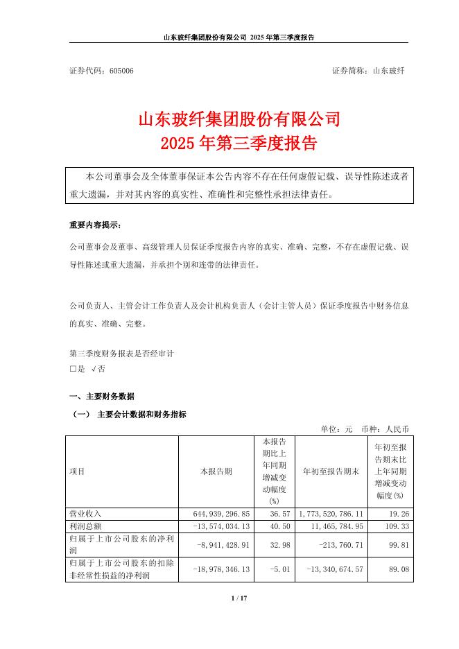 605006-山东玻纤:山东玻纤集团股份有限公司2025年第三季度报告.pdf