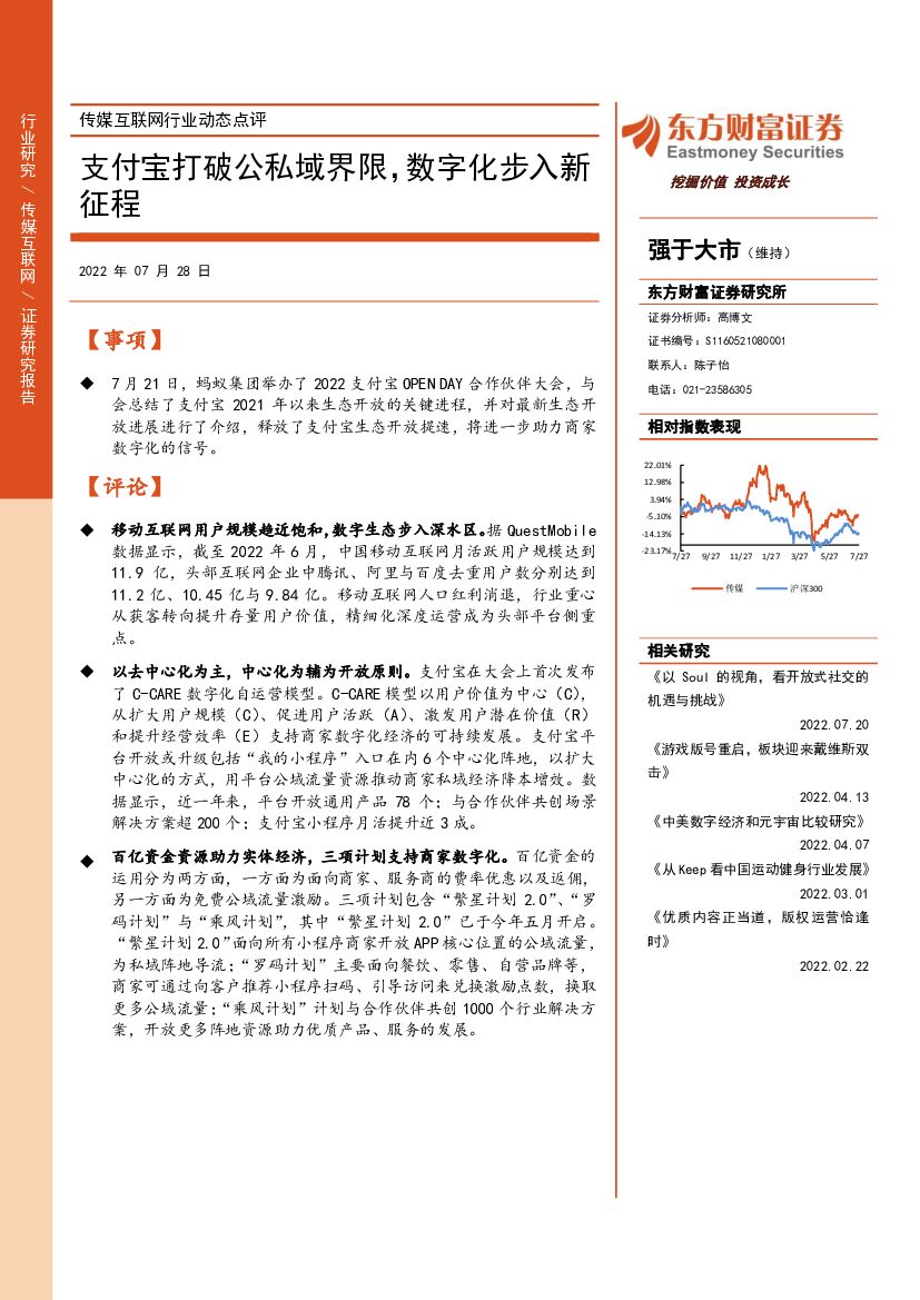 东方财富证券:传媒互联网行业动态点评:支付宝打破公私域界限,数字化步入新征程.pdf